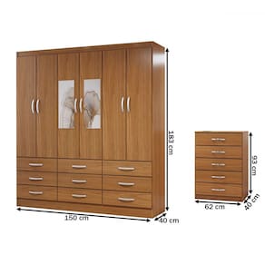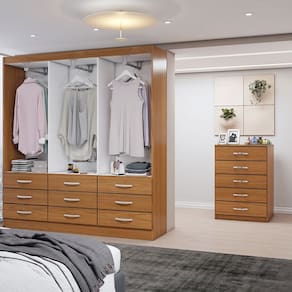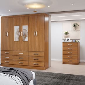 O(a) Guarda-Roupa Casal Vivian 6 Potas 9 Gavetas e Espelho com Cômoda 5 Gavetas Cinamomo - Loja é produzido em MDP na escala de brilho Fosco, e possui um grau de dificuldade de montagem: Médio.