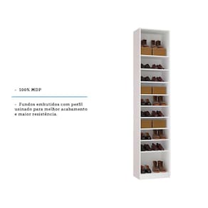 Guarda Roupas sem Portas Modulado Sapateira para Closet com 9 Prateleiras. A linha de roupeiros projetados Prime Closet é o sonho de consumo dos projetos de Closets. Produto 100 em MDP 15mm com acabamento impecável e rápida montagem. Conta com 9 prateleiras para auxiliar na organização dos seus calçados ou até mesmo para decorar. E possui fundos embutidos com perfil usinado para melhor acabamento e maior resistência. Esse produto é muito versátil, podendo ser utilizado em diversos cômodos da sua casa, garantindo a você monta-lo de acordo com suas preferência e necessidade. Aproveite essa oportunidade para transformar seu sonho em realidade.