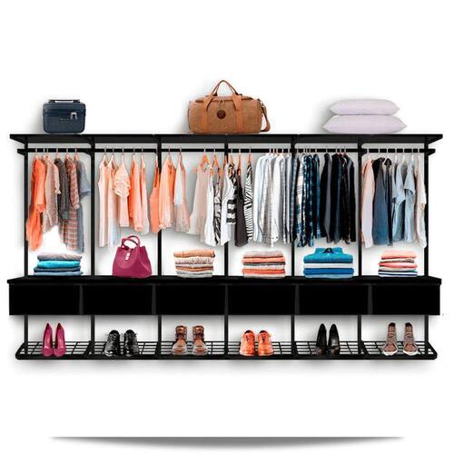 12 *pilhas de roupas dobradas com até 27cm de altura ou em caixa gaveta;
