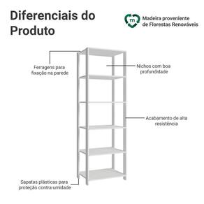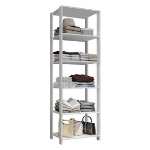 O Closet possui cinco prateleiras amplas, ideais para roupas dobradas, cais organizadoras, sapatos e itens pessoais Além disso, o móvel conta com acabamento branco de alta resistência, pés com sapatas plásticas que protegem contra a umidade e ferragens incluídas para a fição na parede, garantindo mais estabilidade e segurança.