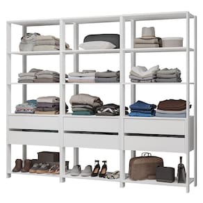 - Três Closets abertos de 70 cm com duas gavetas e quatro prateleiras cada