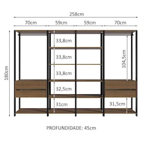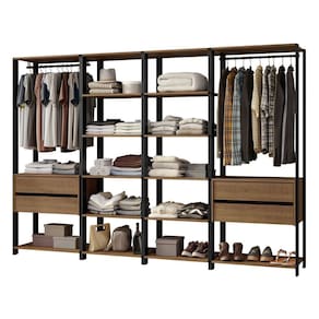 Com uma estrutura aberta, oferece fácil acesso aos seus pertences no dia a dia. Nesta versão, é composto por quatro peças independentes, proporcionando com dois cabideiros metálicos, diversas prateleiras e quatro gavetas espaçosas, proporcionando um amplo espaço de armazenamento.