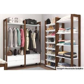 Closet de Quarto AZ1011 Armário Alto c/ 1 Prateleira e 2 Gavetas Preto/Nogal - Tecno Mobili Marca: Tecno Mobili