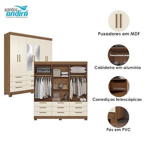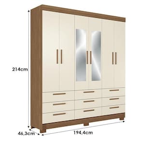 Guarda Roupa Colombo 6 portas 9 Gavetas com Espelho Jatobá Areia Acetinado - Santos Andirá