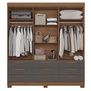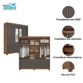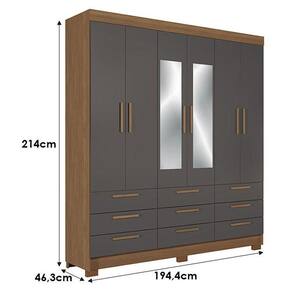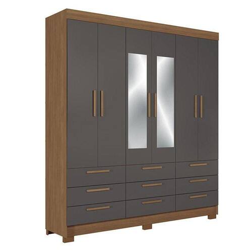 Guarda Roupa Colombo 6 portas 9 Gavetas com Espelho Jatobá Grafite Acetinado - Santos Andirá