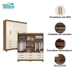 Guarda Roupa Colombo 6 portas 9 Gavetas Jatobá Areia Acetinado - Santos Andirá