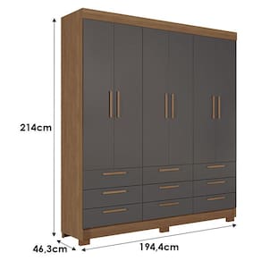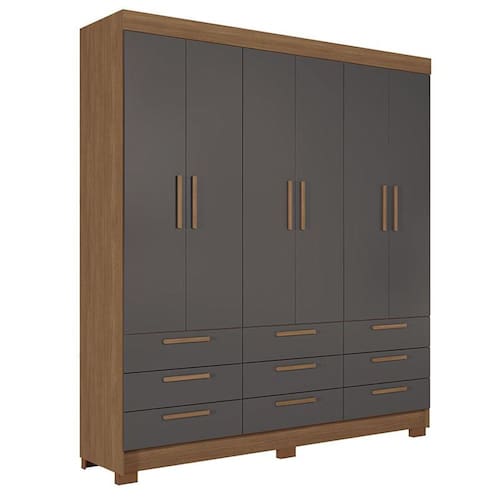 Guarda Roupa Colombo 6 portas 9 Gavetas Jatobá Grafite Acetinado - Santos Andirá