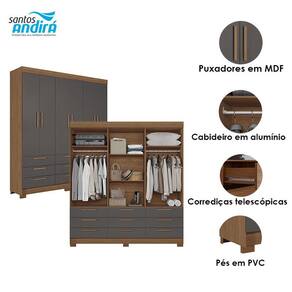 Guarda Roupa Colombo 6 portas 9 Gavetas Jatobá Grafite Acetinado - Santos Andirá