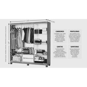 Particularidades do Guarda Roupa.: Altura.: 187 cm Largura.: 153 cm Profundidade.: 40 cm