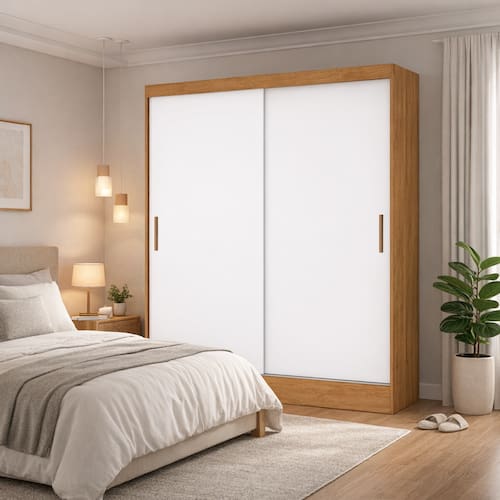 O Guarda-Roupa Sapphire – Grand Line foi desenvolvido para quem busca praticidade, organização e um toque de elegância no quarto. Com 2 portas de correr, ele é ideal para ambientes que precisam de melhor aproveitamento de espaço. Seu interior conta com excelente distribuição, incluindo 2 gavetas espaçosas, ideais para armazenar roupas dobradas, e acessórios. O espaço para cabides permite acomodar diversas peças penduradas, mantendo tudo organizado e bem conservado. As portas possuem sistema de deslizamento suave, garantindo mais conforto e durabilidade no uso diário. Com design moderno e acabamento de qualidade, o Guarda-Roupa une funcionalidade e beleza em um único móvel.