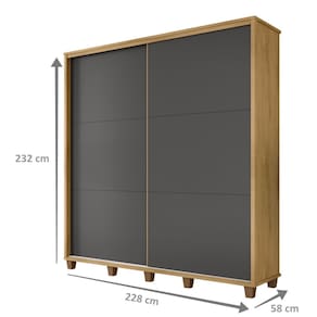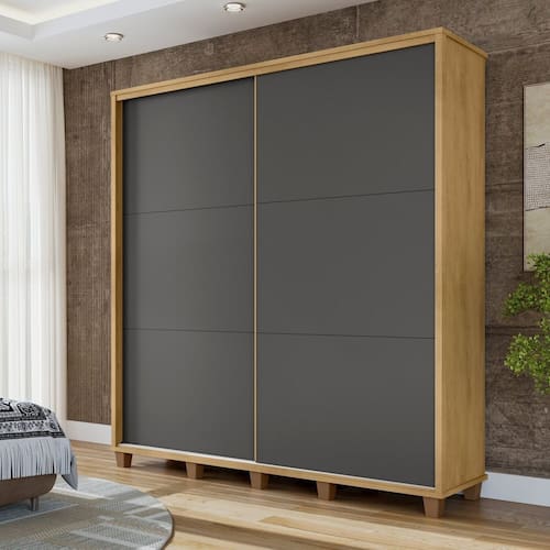 Guarda-roupa com 2 Portas de Correr e 4 Gavetas Monte Carlo Cinamomo /Grafite - Preto