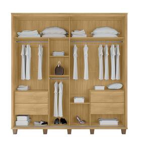 Internamente, conta com 2 maleiros, 5 prateleiras, 4 gavetas com corrediças telescópicas, além de cabideiro, calceiro e trilhos em alumínio, garantindo durabilidade e praticidade no dia a dia. Seu acabamento interno acompanha a cor do produto, proporcionando uniformidade e sofisticação em cada detalhe.