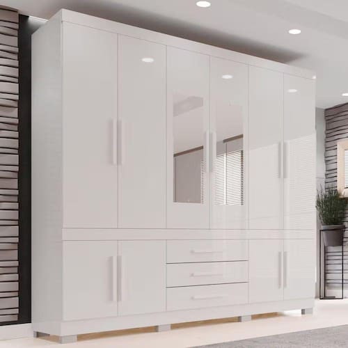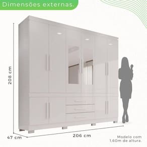 Conteúdo da Embalagem:01Guarda-Roupa com Espelho 10 Portas 3 Gavetas Parma Premium - Sallêto - BrancoDimensões:Altura: 203 cmLargura: 206 cmProfundidade: 47 cmPeso: 113,6 Kg