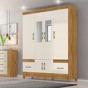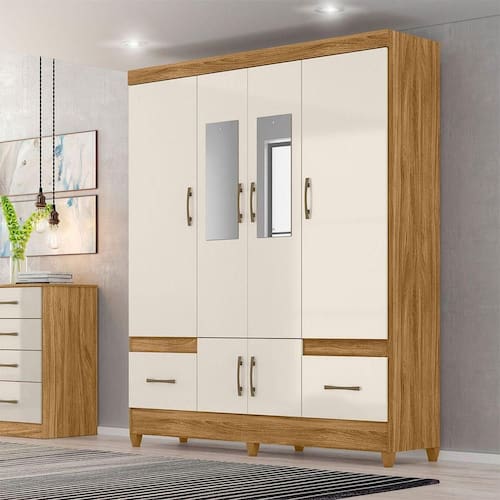 O Guarda-Roupa MS912 é ideal para maximizar a organização de quem tem espaço em ambientes menores. Ele inclui prateleiras, cabideiros e gavetas externas, oferecendo praticidade e eficiência para guardar suas roupas e acessórios. Fabricado em MDP, sendo as portas e frente das gavetas em 15mm, garantindo durabilidade com um acabamento de qualidade. Conta com espelhos nas portas centrais, puxadores na cor bronze e pés em PVC proporcionam estabilidade e facilitam a limpeza. Com essas características, o Guarda-Roupa MS912 é uma escolha prática e estilosa para qualquer quarto.
