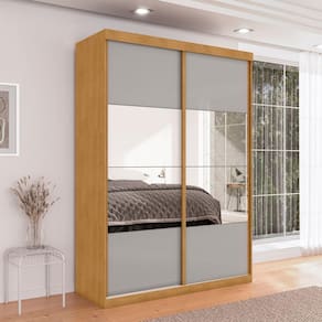 Feito em MDP 3 gavetas com corrediças telescópicas, 2 Portas deslizantes , 3 prateleiras e 3 cabideiro.
