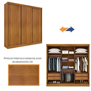 Produto em MDP, cabideiros em alumínio, corrediças telescópicas, perfil puxador em alumínio nas portas, trilhos inferior em alumínio, trilho superior em PVC, roldanas com rolamento, puxador interno nas gavetas em PVC, costas inteiriças. Acabamento da Prateleira: Pintura UV Escala de Brilho da Prateleira: Semi-Brilho Acabamento da Gaveta: Pintura UV Escala de Brilho da Gaveta: Semi-Brilho Tipo de Corrediça: Metálica Telescópica Material do Puxador da Gaveta: PVC Acabamento da Porta: Pintura UV Escala de Brilho da Porta: Semi-Brilho Material do Puxador da Porta: PVC Ambiente Principal: Quarto codigo_ean: 7909903251942 Complexidade da Montagem: Média: pode ser montado por mais de uma pessoa e/ou necessite de maior conhecimento para montagem Cor: Cinamomo/Off White Cor do Produto: Cinamomo/Off White Cor Flex: Cinamomo/Off White Escala de Brilho: Semi-Brilho Espessura do Espelho: 3 mm Formato do Espelho: Retangular Itens Inclusos: 1 Guarda Roupa, Kit Ferragens e Manual de Montagem. Linha ou Coleção: Somalia Manual de Montagem e Instalação: https://product-hub-prd.madeiramadeira.com.br/827011/documents/da543dce-643a-42aa-b7d6-11394378fcc9ntagemroupeiro3portasdacar.pdf Material da Gaveta: MDP Material da Porta: MDP Material da Prateleira: MDP Material Principal: MDP Montagem Flex: Montagem Flex da Porta Necessita Montagem: Sim Peso: 156 kg Peso Máximo por Gaveta: 5 kg Peso Máximo por Prateleira: 10 kg Possui Espaço para Vestidos Longos: Não Possui Espelho: Sim Possui Espelho Interno: Não Possui iluminação: Não Possui Painel de TV: Não Possui Pés: Não Possui Portas: Sim Possui Sapateira: Não Produto Montado: Sim Quantidade de Espelho: 01 Recomendações de Uso, Manutenção e Limpeza: Limpar somente com pano macio e seco, não colocar diretamente em incidência da luz solar. Sistema de Montagem: Parafuso, Cavilha e Prego Suporta Até (kg): 60 kg Tipo de Corrediça da Gaveta: Metálica Telescópica Tipo de Dobradiça/Corrediça da Porta: Metálica Tipo de Fixação do Espelho: Silicone Tipo de Gaveta: Interna Tipo de Guarda-Roupa: Casal Ean: 7909903251942