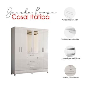 Guarda Roupa com Espelho Casal Itatiba Branco Brilho Moval