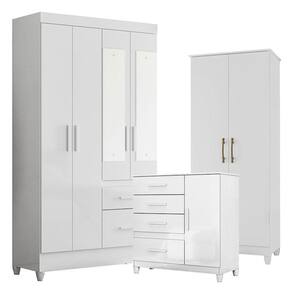 Guarda Roupa com Espelho Infantil Sobral com Cômoda Vênus com pés e Multiuso Jade Branco Brilho Moval