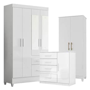 Guarda Roupa com Espelho Infantil Sobral com Cômoda Vênus e Armário Multiuso Jade Branco Brilho Moval