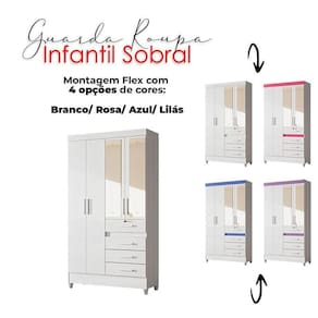 Guarda Roupa com Espelho Infantil Sobral Branco Brilho Moval