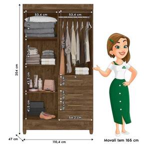 Guarda Roupa com Espelho Solteiro Sobral Castanho Wood Moval