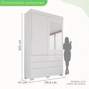 Este lindo Guarda-Roupa Luana Sallêto é fabricado em MDP/MDF, diferenciado pela sua resistência, durabilidade, funcionalidade e beleza, ele é a melhor opção para deixar seu dormitório mais arrumado e convidativo. Com corrediças telescópicas que permitem uma abertura total das gavetas, Portas de correr com trilho em alumínio com trava de segurança evitando que a porta se solte do trilho, costa inteiriça sem perfil H, parte interna clean e espaçosa, divisões internas quem oferecem praticidade e organização, puxadores de madeira que garante maior durabilidade. Se encaixa facilmente em vários estilos de decoração. Aproveite, Móveis Sallêto você merece! Acabamento da Prateleira: Pintura Texturizada UV Escala de Brilho da Prateleira: Brilhante Possui Cabideiros: Sim Acabamento da Gaveta: Pintura Texturizada UV Material do Puxador da Gaveta: Madeira Maciça Possui Organizador de Gaveta: Não Acabamento da Porta: Pintura Texturizada UV Escala de Brilho da Porta: Brilhante Material do Puxador da Porta: Madeira Maciça Altura do Espelho: 80 cm Altura dos Pés: 5 cm Altura Máxima dos Pés: 5.0000 Ambiente Principal: Quarto codigo_ean: 7909903554630 Complexidade da Montagem: Alta: deve ser montado por um montador especializado Cor: Branco Cor do Produto: Branco Escala de Brilho: Brilhante Espessura do Espelho: 3 mm Formato do Espelho: Retangular Gaveta com Chave: Não Itens Inclusos: 1 Guarda Roupa, kit ferragens e manual de montagem Largura do Espelho: 47 cm Linha ou Coleção: Luana Manual de Montagem e Instalação: https://product-hub-prd.madeiramadeira.com.br/891122/documents/fed67a0b-a676-4c8b-a822-4e94e1352a8broupeirostarsalleto2portas.pdf Material da Gaveta: MDF/MDP Material da Porta: MDP Material da Prateleira: MDP Material dos Pés: Polipropileno Material Principal: MDF/MDP modular: Não Necessita Montagem: Sim Origem do Produto: Nacional Peso: 49,189 kg Peso Máximo por Gaveta: 5 kg Peso Máximo por Prateleira: 3 kg Possui Calceiros: Não Possui Espelho: Sim Possui Pés: 06 Possui Portas: Sim Possui Prateleiras: Sim Produto Montado: Sim Quantidade de Espelho: 01 Quantidade de Gavetas: 06 Gavetas Recomendações de Uso, Manutenção e Limpeza: Limpar com flanela ou pano macio seco. Não utilizar produtos abrasivos. Não expor o produto diretamente à luz solar e à umidade. Sistema de Montagem: Parafusos, Cavilhas , Minifix, Dobradiças e Puxadores. Tipo de Corrediça da Gaveta: Metálica Telescópica Tipo de Dobradiça/Corrediça da Porta: Alumínio Tipo de Fixação do Espelho: Parafusos Tipo de Gaveta: Externa Tipo de Guarda-Roupa: Solteiro Tipo de Puxador da Gaveta: Externo Tipo de Puxador da Porta: Externo