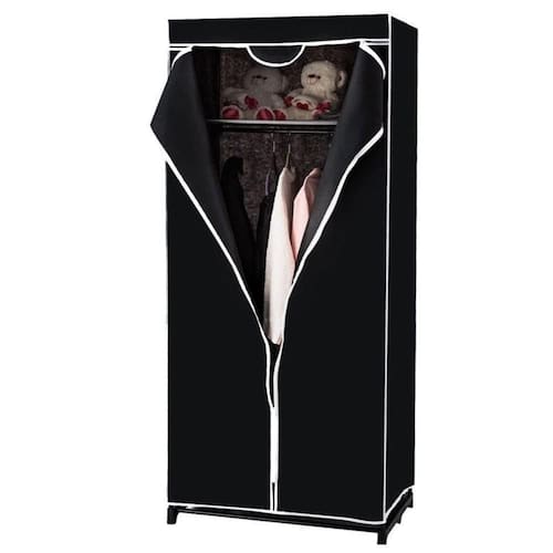 Guarda Roupa Com Ziper Cabideiro Portatil Arara Organizador Prateleira Multiuso Praia Camping Preto