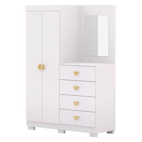 Guarda Roupa Cômoda Com Espelho 120cm Cristal Branco - Vila Rica