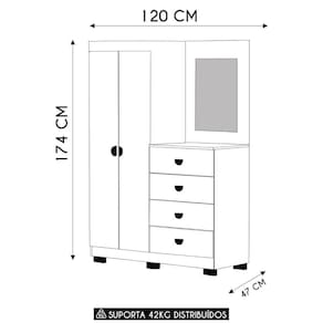 Guarda Roupa Cômoda Com Espelho 120cm Rita Branco V02 - Mpozenato