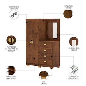 Guarda Roupa Cômoda Com Espelho 120cm Rita Imbuia Rústico V02 - Mpozenato