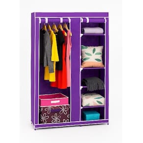 Guarda Roupa Compacto Cabideiro Duplo Arara Prateleiras Sapateira Organizador Camping Quarto Closet Roxo