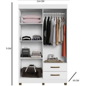 ROUPEIRO COPACABANA É PRODUZIDO EM CHAPA DE 15 MM QUE GARANTE ROBUSTES E MAIOR VIDA ÚTIL , CONTEM 4 PORTAS, 4 PRATELEIRAS, 2 GAVETAS COM CORREDIÇAS TELESCOPICA, CABIDEIRO EM ALUMINIO,ESPAÇO PARA LONGOS, PES INCLUSO NO PRODUTO E PUXADORES MODERNOS , ÓTIMO CUSTO BENEFICIO.Dimensões do produto montado:Altura: 210 cmLargura: 114 cmProfundidade: 43 cm