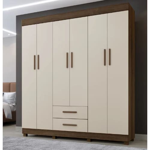 Características:Matéria-prima da estrutura: MDPAmbiente principal: QuartoNecessita montagem: SimPossui pés: Sim, 8.Altura dos pés: 5cmMaterial dos pés: PVCPossui portas: 6Tipo de portas: BaterTipo de puxador da porta: ExternoMatéria-prima dos puxadores: PVCPossui prateleiras: 4Possui gavetas: 2Tipo de gaveta: ExternaTipo de corrediça da gaveta: TelescópicaPossui cabideiro: SimMaterial do cabideiro: AlumínioObservações:Produto necessita de montagem. Não oferecemos serviço de montagem, mas todos os produtos possuem manual de montagem com o passo a passo. Recomendamos contratar um profissional de montagem. Pode existir alguma diferença de tonalidade entre a foto e o produto, devido ao tratamento de imagens e à calibração de cores do monitor. Atenção: Confira as dimensões do produto antes da compra e certifique-se de que estão adequadas aos espaços disponíveis para montagem e uso dos mesmos, aos espaços nos elevadores, escadas, portas e corredores do local da entrega. Pois não são realizadas montagem, desmontagem do produto e/ou portas e janelas, transporte pela escada ou içamento.