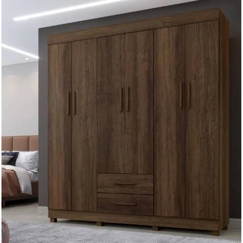 Características:Matéria-prima da estrutura: MDPAmbiente principal: QuartoNecessita montagem: SimPossui pés: Sim, 8.Altura dos pés: 5cmMaterial dos pés: PVCPossui portas: 6Tipo de portas: BaterTipo de puxador da porta: ExternoMatéria-prima dos puxadores: PVCPossui prateleiras: 4Possui gavetas: 2Tipo de gaveta: ExternaTipo de corrediça da gaveta: TelescópicaPossui cabideiro: SimMaterial do cabideiro: AlumínioObservações:Produto necessita de montagem. Não oferecemos serviço de montagem, mas todos os produtos possuem manual de montagem com o passo a passo. Recomendamos contratar um profissional de montagem. Pode existir alguma diferença de tonalidade entre a foto e o produto, devido ao tratamento de imagens e à calibração de cores do monitor. Atenção: Confira as dimensões do produto antes da compra e certifique-se de que estão adequadas aos espaços disponíveis para montagem e uso dos mesmos, aos espaços nos elevadores, escadas, portas e corredores do local da entrega. Pois não são realizadas montagem, desmontagem do produto e/ou portas e janelas, transporte pela escada ou içamento.