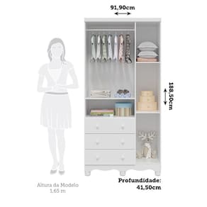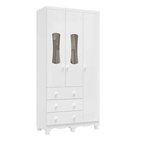 Guarda-Roupa de Bebê 2 Portas com Janela 3 Gavetas 100% MDF Lana Espresso Móveis Branco Brilho. O Guarda Roupa Lana foi desenvolvido para oferecer qualidade, beleza, conforto e segurança para toda família na hora de montar o quartinho do(a) bebê. É produzido com estrutura em 100% MDF e acabamento em pintura UV atóxica. Possui 3 portas com janelas em PETG Cristal/Acrílico, que permitem visualizar parte interna do móvel, 3 gavetas que deslizam sob corrediças metálicas telecópicas, 1 cabideiro metálico, 3 prateleiras para acomodar as peças com organização da sua preferência, puxadores e pés em plástico. Acompanham o produto, 2 opções de rodapés, um usinado (torneado) e outro reto, para que você escolha no momento da montagem qual se adequa ao estilo do ambiente. Aproveite para adquirir o seu agora!