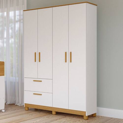 O(a) Guarda-Roupa de Bebê Jujuba 4 Portas 2 Gavetas 100% Mdf Branco/Natural - Permóbili é produzido em 100% MDF na escala de brilho Brilho, e possui um grau de dificuldade de montagem: Médio.