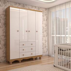 O(a) Guarda-Roupa de Bebê Sueño 4 Portas 3 Gavetas 100% Mdf Branco Brilho/Amêndoa - Loja é produzido em 100% MDF na escala de brilho Brilhante e Semi-Brilho, e possui um grau de dificuldade de montagem: Médio.