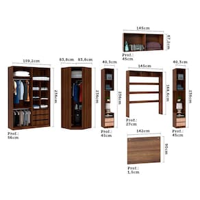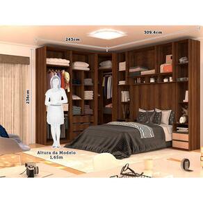 O Guarda Roupa de Canto aproveita aquele espaço que parece sem utilidade, a Linha Modulada Prime foi desenvolvida adequando-se a vários espaços, de grandes a pequenos, pois seus módulos possuem 236 cm de altura oferecendo divisórias para atender diversas necessidades, com profundidade de 56cm possibilitando acomodar roupas sem amassar, possui 3 amplas gavetas. A Ponte Modulada possui 145cm, para utilização com colchão Casal de 138cm de largura. Ainda conta com armários, Mesa de Cabeceira altos com prateleiras e 4 gavetas. Os módulos são peças individuais o que permite montar e acomodar da forma que melhor se adequar ao espaço disponível. Produzido em MDP de 15mm, dobradiças reforçadas em 35mm e corrediças telescópicas em todas as gavetas que possibilitam abertura total. Para esta proposta usamos as medidas de parede: Lado Cabeceira 309,4cm X 243cm.