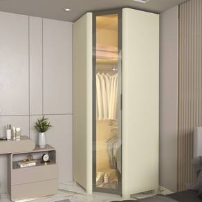 O Guarda Roupa de Canto Modulado com LED e Vidro Reflecta 1 Porta com Pes MDF Innova Gelius e a combinacao perfeita de elegancia e funcionalidade. Com estrutura 100 em MDF de 15mm e design com cantos curvos, oferece durabilidade e acabamento sofisticado. Possui porta em vidro Reflecta com moldura em aluminio, iluminacao em LED de tonalidade quente, interruptor e tomada embutida. Conta ainda com 2 cabideiros, 2 prateleiras internas, dobradicas com sistema Slow Motion e pes em MDF, garantindo funcionalidade e modernidade ao ambiente.