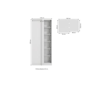 Acabamento: Pintura Brilho | Acabamento da Fita Borda: Papel | Cor: Branco | Dobradiça: Com Amortecimento | Garantia: 3 meses para defeito de fabricação | Matéria-prima: MDP | Peso suportado por cada prateleira: 7 kg | Puxadores: MDF Revestido | Quantidade de portas: 1 | Quantidade de prateleiras: 5 | Sistema de montagem: Parafuso Philips / Parafuso Philips e Minifix | Tipo de porta: Bater
