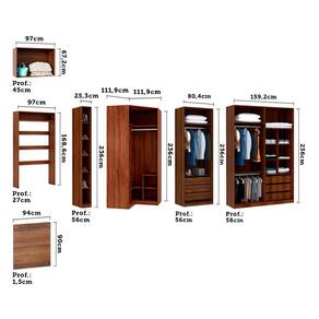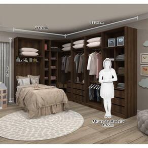 O Guarda Roupa de Canto aproveita aquele espaço que parece sem utilidade, a Linha Modulada Prime foi desenvolvida adequando-se a vários espaços, de grandes a pequenos, pois seus módulos possuem 236 cm de altura oferecendo divisórias para atender diversas necessidades, com profundidade de 56cm possibilitando acomodar roupas sem amassar, possui 9 amplas gavetas com corrediças telescópicas. A Ponte Modulada possui 97cm, para utilização com colchão Solteiro de 88cm de largura. Os módulos são peças individuais o que permite montar e acomodar da forma que melhor se adequar ao espaço disponível. Produzido em MDP de 15mm, dobradiças reforçadas em 35mm e corrediças telescópicas em todas as gavetas que possibilitam abertura total. Para esta proposta usamos as medidas de parede: Lado Cabeceira 234,1cm X 351,4cm.