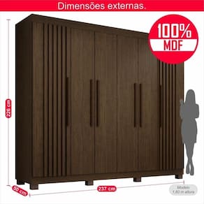 Possui estrutura em MDF, portas articuladas com dobradiça metálica, gavetas com corrediça telescópica, cabideiro metálico, puxadores em madeira e acabamento UV.Conquistar aquele móvel digno de páginas de revistas é mais fácil do que você imagina. Excelente para organizar os objetos do dia a dia, o Guarda-Roupa Inglaterra tem gavetas espaçosas e cabideiros perfeitos para manter roupas sempre impecáveis. Além disso, seu design clássico traz requinte e harmonia para o ambiente, que ficará ainda mais aconchegante. É qualidade e beleza que você procura? Nós encontramos para você.