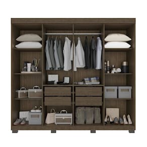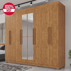 Altura: 226 cm | Largura: 243 cm | Material da Estrutura: 100% MDF | Possui Espelho: Sim | Profundidade: 45 cm | Quantidade de Gavetas: 4 gavetas | Quantidade de Portas: 8 Portas | Tipo de Portas: Bater Cor: Cinamomo