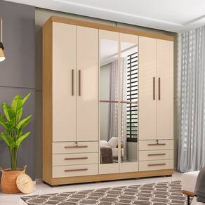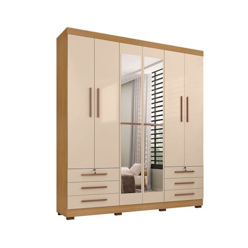 Apresentamos o incrível Guarda Roupa De Casal 6 Portas e 6 Gavetas Com Espelho Durham, uma peça de mobiliário que combina elegância, funcionalidade e durabilidade para transformar o quarto do casal em um espaço organizado e charmoso.