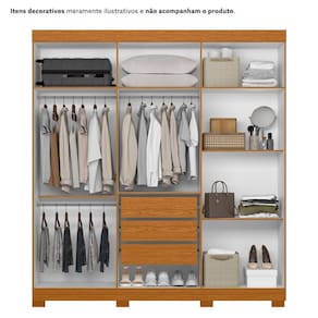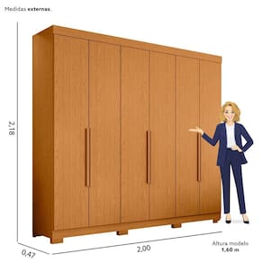 Guarda Roupa Vinci 6 Portas com puxadores em MDF revestidos, 3 gavetas internas com corrediças telescópicas, cabideiros em alumínio e pés inclusos. Oferece excelente aproveitamento de espaço, ideal para manter tudo organizado com praticidade e estilo. Acabamento da Prateleira: Pintura UV Escala de Brilho da Prateleira: Fosco Acabamento da Gaveta: Pintura UV Escala de Brilho da Gaveta: Fosco Possui Organizador de Gaveta: Não Acabamento da Porta: Pintura UV Escala de Brilho da Porta: Fosco Material do Puxador da Porta: MDF Acabamento dos Pés: Verniz Altura dos Pés: 5 cm Altura Máxima dos Pés: 5.0000 Ambiente Principal: Quarto codigo_ean: 7900288197627 Complexidade da Montagem: Alta: deve ser montado por um montador especializado Cor: Cinamomo Cor do Produto: Cinamomo Cor do Puxador: Marrom Cor Interna: Branco Escala de Brilho: Fosco Espessura da Estrutura (mm): 12 mm Espessura das Portas (mm): 15 mm Espessura das Prateleiras (mm): 12 mm Espessura do Fundo (mm): 3 mm Espessura do Fundo das Gavetas (mm): 3 mm Gaveta com Chave: Não Guarda-Roupa Suporta Até (kg): 73 kg Itens Inclusos: 1 Guarda-Roupa, Manual de Montagem e Kit de Ferragem Linha ou Coleção: Vinci Manual de Montagem e Instalação: https://product-hub-prd.madeiramadeira.com.br/835442266/documents/f32784e5-243a-4621-b080-955f1aead6ee308552967517531178268519.pdf Marca: Albatroz Móveis Material da Gaveta: MDP Material da Porta: MDP Material da Prateleira: MDP Material dos Pés: ABS Material Principal: MDP modular: Não Necessita Montagem: Sim Nicho com Cabideiro: Sim Origem do Produto: Nacional Peso: 115,5 kg Peso Máximo por Gaveta: 5 kg Peso Máximo por Prateleira: 5 kg Porta Janelada: Não Possui Calceiros: 01 Possui Capelinha: Não Possui Espaço para Vestidos Longos: Não Possui Espelho: Não Possui Espelho Interno: Não Possui Ganchos: Não Possui iluminação: Não Possui Nichos: Não Possui Painel de TV: Não Possui Penteadeira: Não Possui Pés: 08 Possui Portas: Sim Possui Prateleiras: Sim Possui Sapateira: Não Produto Montado: Sim Quantidade de Cabideiros: 02 Cabideiros Quantidade de Gavetas: 03 Gavetas Quantidade de Prateleiras: 05 Prateleiras Recomendações de Uso, Manutenção e Limpeza: Limpar com flanela ou pano macio seco, não utilizar produtos abrasivos, desengordurantes, álcool ou solvente. Não expor o produto diretamente á luz solar e á umidade. Sistema de Montagem: Parafusos, cavilhas e minifix Suporta Até (kg): 73 kg Tipo de Corrediça da Gaveta: Metálica Telescópica Tipo de Dobradiça/Corrediça da Porta: Metálica Tipo de Gaveta: Interna Tipo de Guarda-Roupa: Casal Tipo de Puxador da Gaveta: Não Possui Tipo de Puxador da Porta: Externo