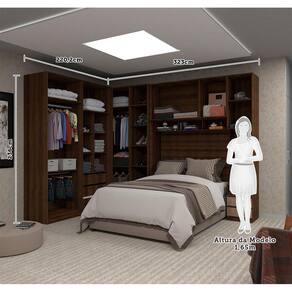 O Guarda Roupa de Canto aproveita aquele espaço que parece sem utilidade, a Linha Modulada Prime foi desenvolvida adequando-se a vários espaços, de grandes a pequenos, pois seus módulos possuem 236 cm de altura oferecendo divisórias para atender diversas necessidades, com profundidade de 56cm possibilitando acomodar roupas sem amassar, possui 3 amplas gavetas. A Ponte Modulada possui 145cm, para utilização com colchão Casal de 138cm de largura. Ainda conta com armários, Mesa de Cabeceira altos com prateleiras e 2 gavetas. Os módulos são peças individuais o que permite montar e acomodar da forma que melhor se adequar ao espaço disponível. Produzido em MDP de 15mm, dobradiças reforçadas em 35mm e corrediças telescópicas em todas as gavetas que possibilitam abertura total. Para esta proposta usamos as medidas de parede: Lado Cabeceira 323cm X 220,2cm.