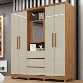 Altura: 216 cm | Largura: 165 cm | Material da Estrutura: MDP | Possui Espelho: Sim | Profundidade: 42 cm | Quantidade de Gavetas: 2 Gavetas | Quantidade de Portas: 5 Portas | Tipo de Portas: Bater | tipo de guarda roupa: casal | tonalidade: incolor | quantidade de portas: 4 Cor: Cinamomo/Off