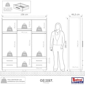 Dimensões: Altura: 185 cm | Largura: 156 cm | Profundidade: 46 cm
