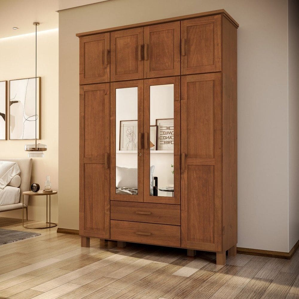 guarda roupa de madeira 8 portas com gaveta e espelho