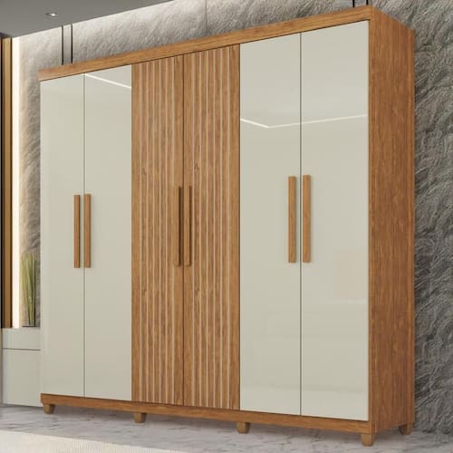 Altura: 216 cm | Largura: 183 cm | Material da Estrutura: 100% MDF | Possui Espelho: Não | Profundidade: 45 cm | Quantidade de Gavetas: 2 Gavetas | Quantidade de Portas: 6 Portas | Tipo de Portas: Bater | tipo de guarda roupa: casal | tonalidade: incolor | quantidade de portas: 6 Cor: Off/Cinamomo